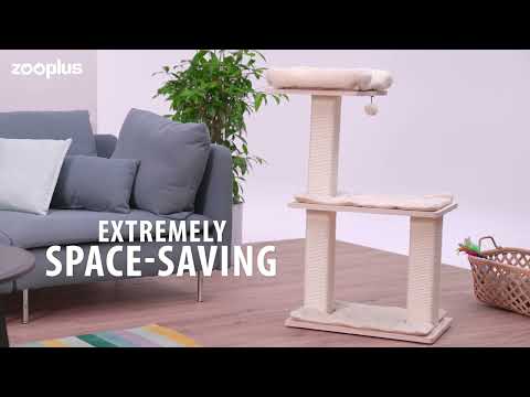 Hey, come on. Don't look so critical. A scratching post doesn't always have to reach the ceiling. Look how cosy this scratching furniture looks - and have you seen the thick scratching posts? You can choose where you want to rest. On the platform with the play ball or would you prefer the cosy bed at the top? A high level of comfort is provided on both levels. The trunks are square and not round, so you have even more space to scratch, stretch and stretch out. The scratching post is so stable and sturdy that it is also suitable for large tigers like you who like to attack the scratching posts with vigour. That's what makes claw care the most fun, isn't it?