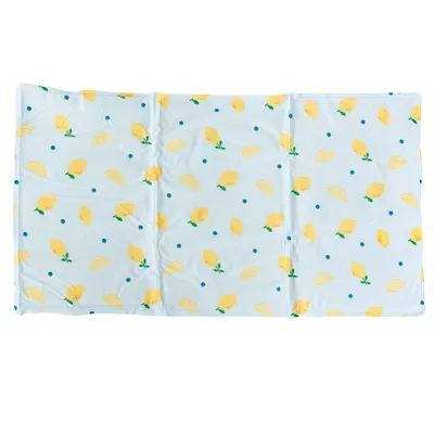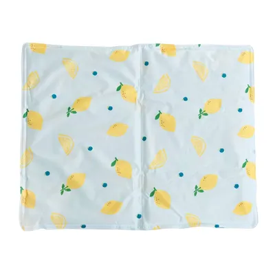 Self-cooling underlay for dogs and cats, with a delightful citrus print and soft gel, ideal for cooling your pet on hot days and easy to fold up for storage, non-toxic and environmentally friendly.