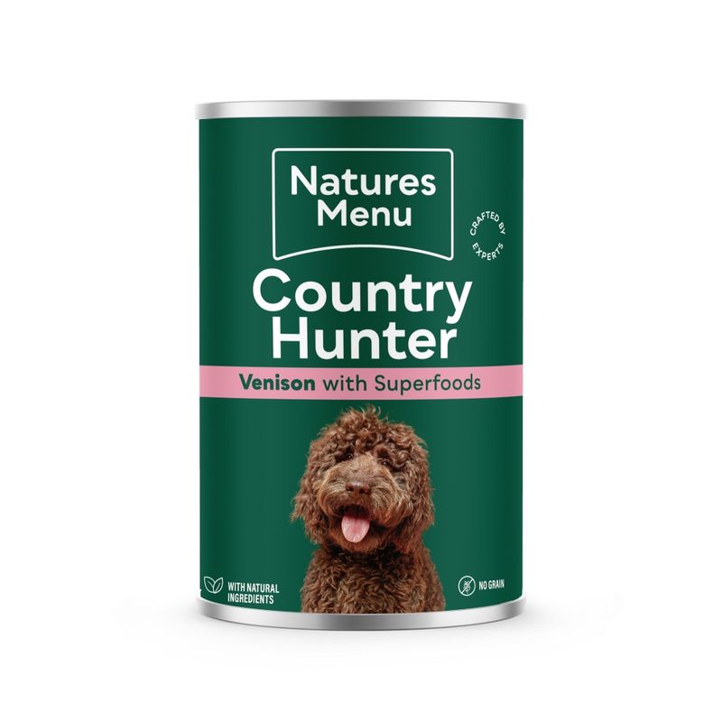 Natures Menu Country Hunter Game Meat Selection Cans are a complete wet dog food.